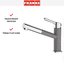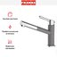 Внутри крана помещается шланг, который можно растянуть, чтобы достать струей воды до второй чаши мойки или тщательно сполоснуть посуду.