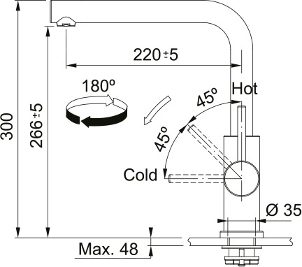 Высота излива — один из важнейших параметров, которые необходимо учитывать при выборе кухонного смесителя. Высотой называется расстояние от поверхности, на которой установлен смеситель, до его носика, то есть это, по сути, длина струи воды. Подбирать модель по высоте следует так, чтобы в раковину без труда помещались любые емкости, которыми вы пользуетесь, включая большие кастрюли и высокие вазы, а вода при ударе о дно раковины не разбрызгивалась во все стороны. Чем больше высота излива, тем глубже должна быть раковина.