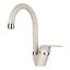 По высоте все смесители можно разделить на три группы: низкие, средние и высокие. Низкие обычно имеют один вентиль, а средние и высокие — по два. Высота низких смесителей составляет около 10-12 см, их выбирают для небольшой мойки глубиной около 120-140 мм и чаще устанавливают в ванной, чем в кухне. Кухонные модели могут дополняться выдвижными шлангами и поворотным изливом. Высота средних смесителей варьируется в пределах от 15 до 25 см: за стандартный принят размер 22 см. Они могут крепиться к мойке или к стене и подойдут для раковин глубиной около 170 мм. Для больших раковин глубиной более 20 см подойдут высокие изливы — от 25 до 50 см: они наиболее удобны, но требуют больше места.
