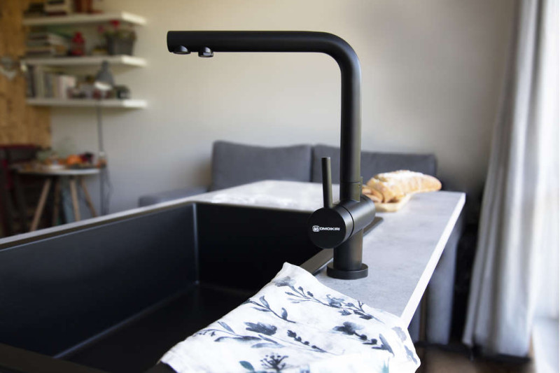 Рычаг для включения фильтрованной воды применяется в современных комбинированных смесителях, где из одного и того же излива подается и водопроводная, и питьевая вода. Такие смесители типа «два в одном» отличаются от обычных тем, что имеют не два подключения, а три, где третье соединяет смеситель с фильтром. Очищенная вода подается по изолированной трубке, проходящей внутри излива. Для удаления накипи, солей металлов, микроорганизмов и прочих вредных примесей могут применяться различные типы фильтров. Проточные фильтры устанавливаются под мойкой и включают несколько картриджей, которые необходимо менять по мере использования. С их помощью можно избавиться от таких примесей, как железо, хлор и многие другие. Устройства с системой обратного осмоса оснащаются диффузором, включающим картриджи для предварительной очистки и осмотическую мембрану, задерживающую практически все вредные примеси.
