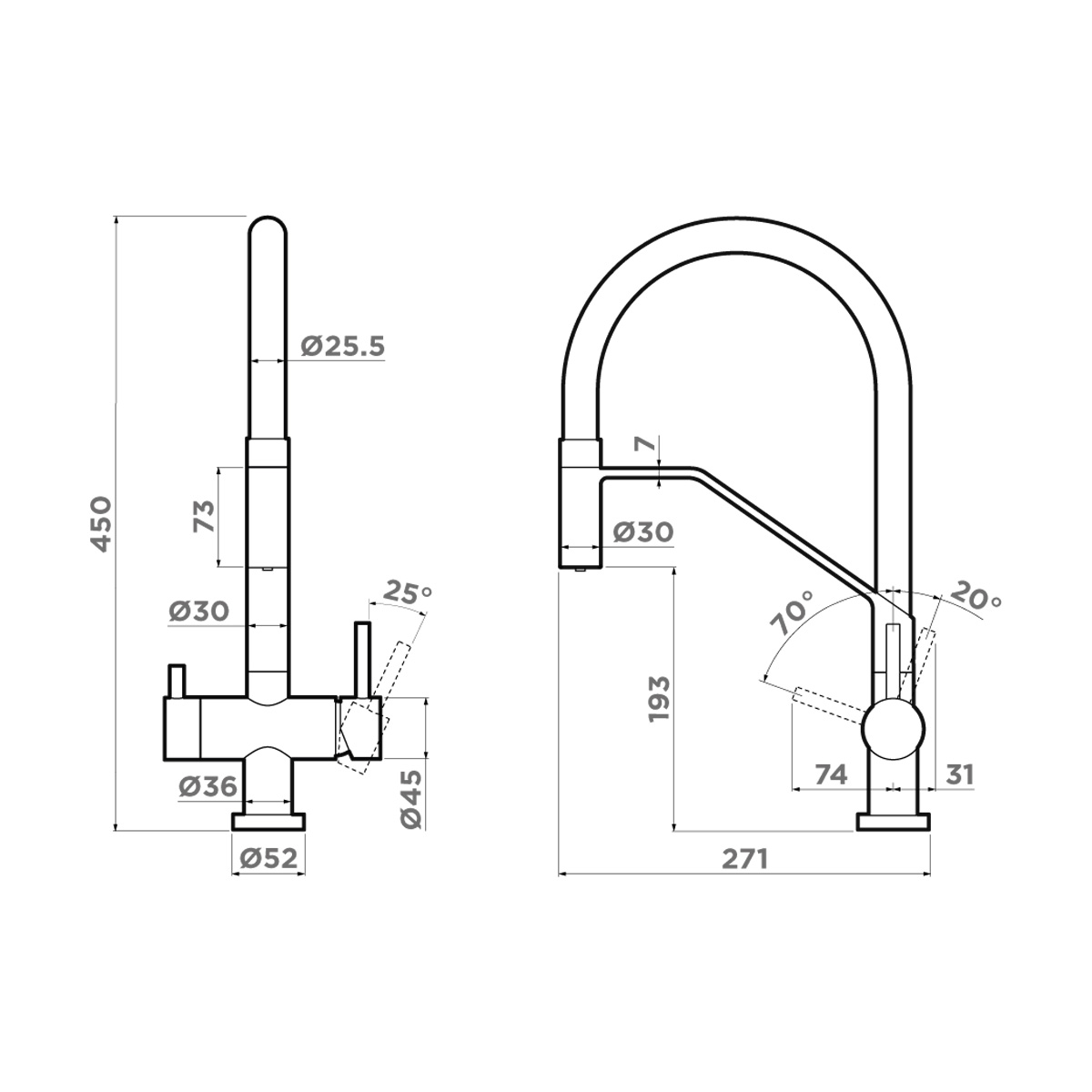 Для подачи чистой воды смесители могут оснащаться единственным рычагом, при помощи которого производится переключение на фильтр. Этот же рычаг регулирует напор и температуру водопроводной воды. Чаще на изливе имеются два рычага, один из которых отвечает только за включение фильтрованной воды.