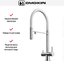 По высоте все смесители можно разделить на три группы: низкие, средние и высокие. Низкие обычно имеют один вентиль, а средние и высокие — по два. Высота низких смесителей составляет около 10-12 см, их выбирают для небольшой мойки глубиной около 120-140 мм и чаще устанавливают в ванной, чем в кухне. Кухонные модели могут дополняться выдвижными шлангами и поворотным изливом. Высота средних смесителей варьируется в пределах от 15 до 25 см: за стандартный принят размер 22 см. Они могут крепиться к мойке или к стене и подойдут для раковин глубиной около 170 мм. Для больших раковин глубиной более 20 см подойдут высокие изливы — от 25 до 50 см: они наиболее удобны, но требуют больше места.