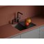 Внутри крана помещается шланг, который можно растянуть, чтобы достать струей воды до второй чаши мойки или тщательно сполоснуть посуду.