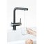 Рычаг для включения фильтрованной воды применяется в современных комбинированных смесителях, где из одного и того же излива подается и водопроводная, и питьевая вода. Такие смесители типа «два в одном» отличаются от обычных тем, что имеют не два подключения, а три, где третье соединяет смеситель с фильтром. Очищенная вода подается по изолированной трубке, проходящей внутри излива. Для удаления накипи, солей металлов, микроорганизмов и прочих вредных примесей могут применяться различные типы фильтров. Проточные фильтры устанавливаются под мойкой и включают несколько картриджей, которые необходимо менять по мере использования. С их помощью можно избавиться от таких примесей, как железо, хлор и многие другие. Устройства с системой обратного осмоса оснащаются диффузором, включающим картриджи для предварительной очистки и осмотическую мембрану, задерживающую практически все вредные примеси.