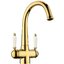 Рычаг для включения фильтрованной воды применяется в современных комбинированных смесителях, где из одного и того же излива подается и водопроводная, и питьевая вода. Такие смесители типа «два в одном» отличаются от обычных тем, что имеют не два подключения, а три, где третье соединяет смеситель с фильтром. Очищенная вода подается по изолированной трубке, проходящей внутри излива. Для удаления накипи, солей металлов, микроорганизмов и прочих вредных примесей могут применяться различные типы фильтров. Проточные фильтры устанавливаются под мойкой и включают несколько картриджей, которые необходимо менять по мере использования. С их помощью можно избавиться от таких примесей, как железо, хлор и многие другие. Устройства с системой обратного осмоса оснащаются диффузором, включающим картриджи для предварительной очистки и осмотическую мембрану, задерживающую практически все вредные примеси.
