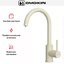 Корпус изготовлен из латуни — материал придает конструкции монолитность и уверенную посадку. Поверхность ванильного цвета выглядит мягко и благородно, сочетается как со светлыми, так и с контрастными столешницами. Визуально форма остаётся легкой, при этом кран ощущается основательно и устойчиво.