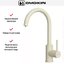 Модель выглядит сдержанно и элегантно: корпус ванильного цвета, плавные линии и вытянутый силуэт. Высокий излив 22,6 см создает комфортную зону над мойкой, а вылет 17,9 см помогает точно направлять поток. Компактная база с габаритами 10,5×33,3 см гармонично вписывается в рабочее пространство, не перегружая интерьер.