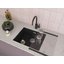 Длиной излива называется расстояние по горизонтали от основания смесителя до точки в раковине, куда падает струя воды. Учитывать длину при выборе смесителя и мойки так же важно, как и высоту. Основной фактор выбора: струя должна попадать в середину раковины, а не на одну из боковых поверхностей, чтобы не забрызгать столешницу и рядом стоящую бытовую технику. В идеале она должна попадать прямо на сливное отверстие, в крайнем случае место падения должно располагаться между сливным отверстием и передней стенкой. При этом нужно учитывать угол, под которым падает струя, а также расстояние от основания смесителя до ближайшей стенки раковины. Проводить измерения следует при максимальном напоре воды.