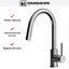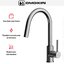 Внутри крана помещается шланг, который можно растянуть, чтобы достать струей воды до второй чаши мойки или тщательно сполоснуть посуду.