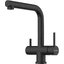Для подачи чистой воды смесители могут оснащаться единственным рычагом, при помощи которого производится переключение на фильтр. Этот же рычаг регулирует напор и температуру водопроводной воды. Чаще на изливе имеются два рычага, один из которых отвечает только за включение фильтрованной воды.