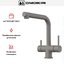 Для подачи чистой воды смесители могут оснащаться единственным рычагом, при помощи которого производится переключение на фильтр. Этот же рычаг регулирует напор и температуру водопроводной воды. Чаще на изливе имеются два рычага, один из которых отвечает только за включение фильтрованной воды.