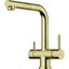 Рычаг для включения фильтрованной воды применяется в современных комбинированных смесителях, где из одного и того же излива подается и водопроводная, и питьевая вода. Такие смесители типа «два в одном» отличаются от обычных тем, что имеют не два подключения, а три, где третье соединяет смеситель с фильтром. Очищенная вода подается по изолированной трубке, проходящей внутри излива. Для удаления накипи, солей металлов, микроорганизмов и прочих вредных примесей могут применяться различные типы фильтров. Проточные фильтры устанавливаются под мойкой и включают несколько картриджей, которые необходимо менять по мере использования. С их помощью можно избавиться от таких примесей, как железо, хлор и многие другие. Устройства с системой обратного осмоса оснащаются диффузором, включающим картриджи для предварительной очистки и осмотическую мембрану, задерживающую практически все вредные примеси.