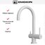 Дизайн модели отражает утончённый вкус: чёткие пропорции, аккуратные формы и сдержанная цветовая гамма делают её универсальной для различных стилей — от неоклассики до скандинавского минимализма. Двухвентильная компоновка не только добавляет визуальной выразительности, но и позволяет тонко настраивать температуру потока, что особенно удобно при приготовлении пищи или мытье деликатных предметов.