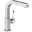 Однорычажный смеситель с хромированным покрытием нержавеющей стали. Смеситель Smeg MDQ5-CR отличается выдвижным изливом, благодаря которому, уход за кухонной мойкой стал намного быстрее и проще. Специальный клапан на изливе защищает от неприятных капель и брызг. А специальный керамический картридж снижает уровень шума воды. Керамический картридж также считается наиболее износостойким.