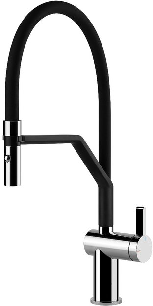 Дизайн модели подчеркнут эффектным сочетанием черного и хромированного цветов, создающим выразительный визуальный контраст и придающим интерьеру современную динамику. Глянцевая текстура покрытия придает изделию изысканный блеск и делает его простым в уходе: на поверхности не остаются пятна, следы от воды и отпечатки пальцев. Основа смесителя изготовлена из высококачественной латуни — материала, отличающегося прочностью, долговечностью и надежной защитой от коррозии, что гарантирует стабильную эксплуатацию на протяжении многих лет.