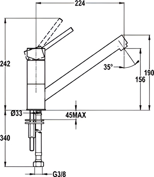 Горизонтальная установка привычна нам: смеситель устанавливается на краю мойки или столешницы. При вертикальной кран крепится на стену.
