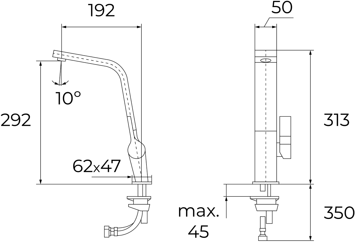 Горизонтальная установка привычна нам: смеситель устанавливается на краю мойки или столешницы. При вертикальной кран крепится на стену.