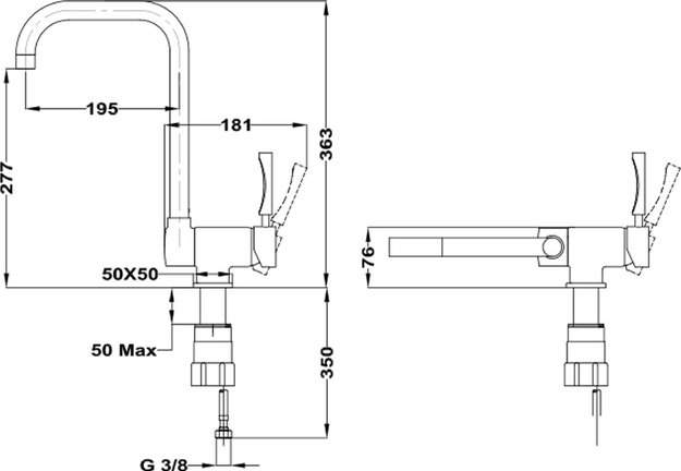 Горизонтальная установка привычна нам: смеситель устанавливается на краю мойки или столешницы. При вертикальной кран крепится на стену.
