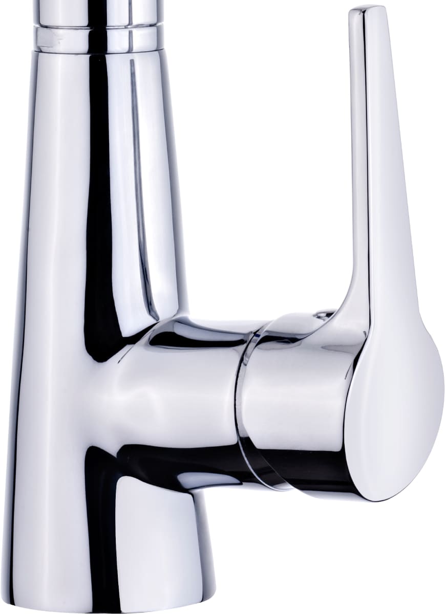 Выдвижной излив в кухонном смесителе — это гибкая трубка из резины в металлической оплетке, расположенная внутри основного излива. Для того, чтобы воспользоваться гибким изливом — например, наполнить высокую посуду, — достаточно включить воду и потянуть за головку, находящуюся на конце трубки.