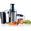 Универсальные соковыжималки позволяют получить сок из любых фруктов и овощей. Продукты в них измельчаются при помощи вращающейся терки в кашицу, которая обрабатывается в центрифуге, где мякоть отделяется от жидкости под действием центробежной силы, и сок сливается о специальный контейнер.