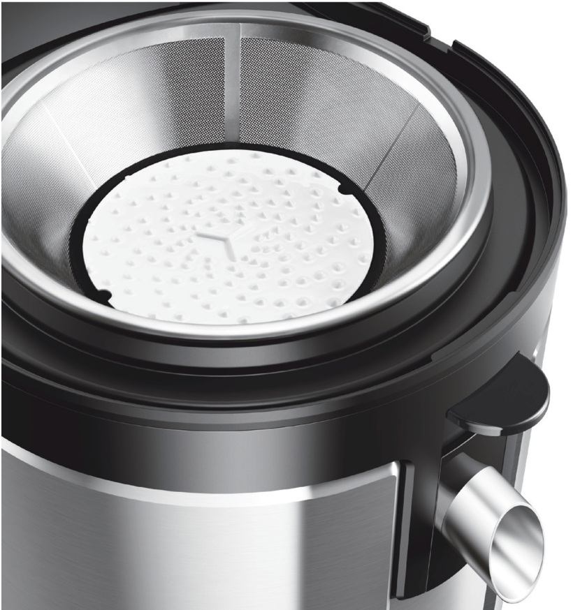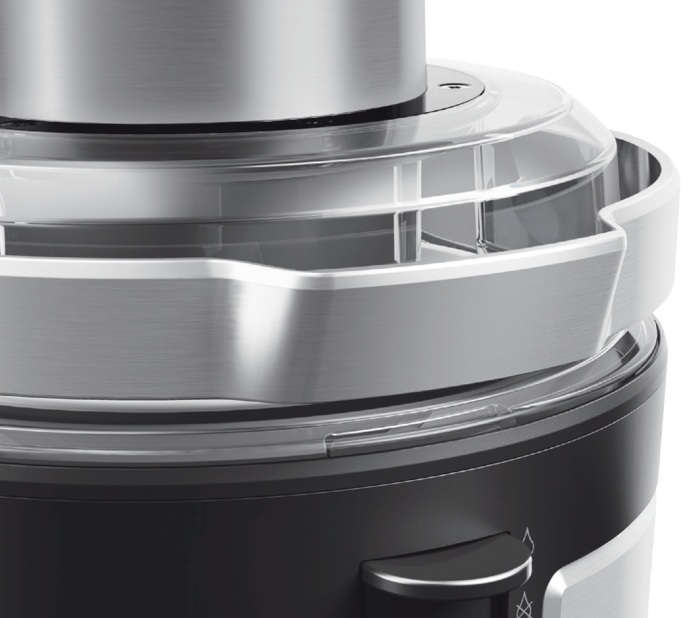 Контейнер для мякоти в соковыжималках представляет собой резервуар из прочного пластика, куда автоматически посредством специальной системы отвода мякоти сбрасываются отходы, или жмых, на протяжении всего процесса приготовления сока. Контейнер легко снимается для очистки под струей воды.