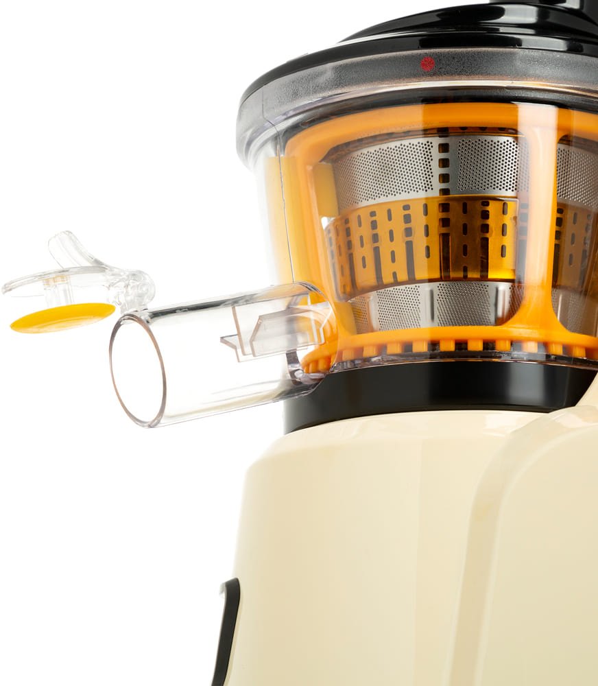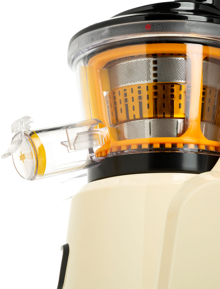 Конструктивные элементы усилены практичными опциями. Горловина диаметром 40 мм и загрузочный лоток сокращают время подготовки ингредиентов и уменьшают необходимость предварительной нарезки. Автоматический выброс мякоти и съемный контейнер по 0,8 л каждый освобождают от частых перерывов на очистку и позволяют готовить напитки без лишних усилий. Индикатор уровня сока подскажет, когда емкость наполнена, а сепаратор для пены улучшит прозрачность жидкости.