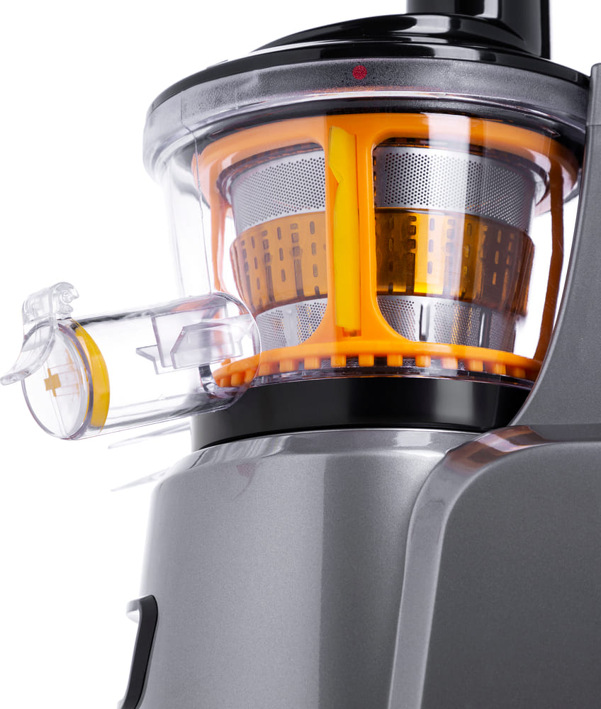 Контейнер для мякоти в соковыжималках представляет собой резервуар из прочного пластика, куда автоматически посредством специальной системы отвода мякоти сбрасываются отходы, или жмых, на протяжении всего процесса приготовления сока. Контейнер легко снимается для очистки под струей воды.
