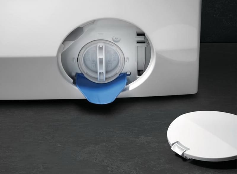 Защита от перелива включает в себя датчик уровня воды, или прессостат, а также сливной насос. В случае переполнения бака и превышения предусмотренного уровня прессостат подает сигнал, который поступает в систему управления. Такая же команда будет отправлена и при поломке прессостата. Система управления прекращает поступление воды — и в свою очередь отправляет команду на сливной насос, который откачивает воду до тех пор, пока ее уровень не будет соответствовать требованиям программы. На дисплее при этом появляется сообщение об ошибке. Таким образом, эта система работает полностью автоматически, без участия человека.