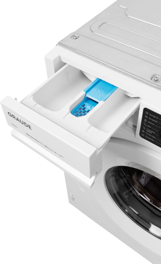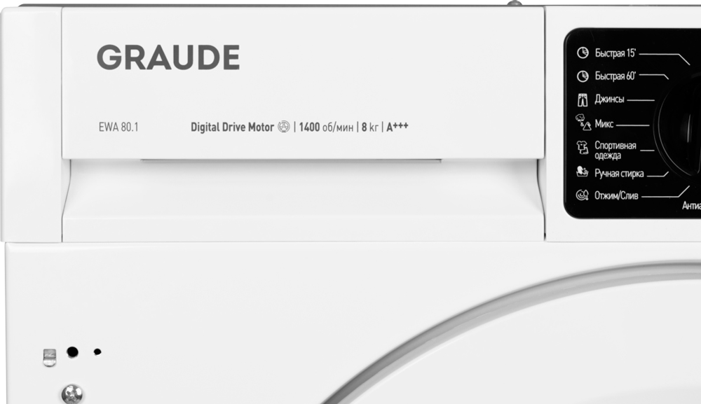 Стиральная машина Грауде EWA 80.1 принадлежит к немногочисленному сегменту встраиваемой техники — для ее установки необходимо тщательно выбрать заранее нишу в мебельном гарнитуре. Благодаря классической фронтальной загрузке она привычна и удобна даже для тех, кто не очень разбирается в технике. За счет небольшой глубины данную модель предпочитают владельцы небольших квартир, студий. Вместительность барабана средняя, поэтому ее хватит и для одиночек, и для семей с детьми. Максимальная загрузка: 8 кг.