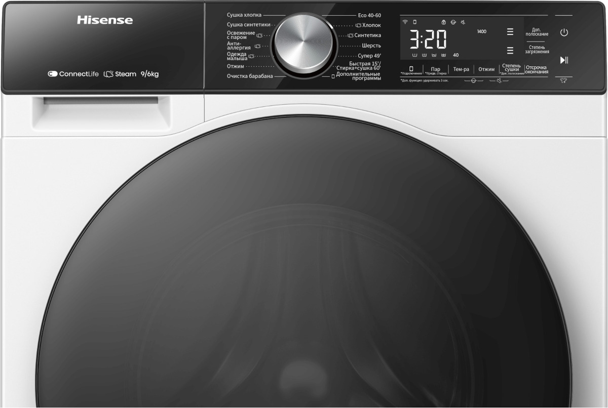 Эта модель — комбинация стирки и сушки, что полезно людям, которые не могут или не хотят приобретать отдельно сушильную машину, при этом в квартире нет балкона или лоджии, чтобы с комфортом сушить одежду на веревках. Вы можете отложить запуск, если хотите сэкономить на тарифах и включить машинку ночью, либо если планируете развесить белье сразу после возвращения работы и не ждать, пока закончится цикл. На панели управления отображаются разнообразные индикаторы, чтобы было проще следить за процессом, например: температуры стирки, скорости отжима, времени до окончания стирки, выбора дополнительных функций, блокировки дверцы, блокировки от детей, сушки. Скорость отжима достигает 1400 оборотов в минуту. Функцию отжима можно будет отключить вручную, если она вам не нужна.