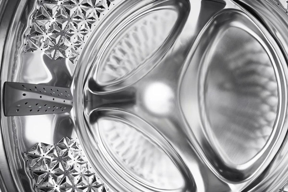 Барабан обычно изготавливается из тонкой нержавеющей стали, отверстия на боковой поверхности могут располагаться по-разному и иметь разную форму. Поверхность барабана в большинстве моделей не является гладкой: на ней находятся выпуклости и впадины для лучшего скольжения белья.