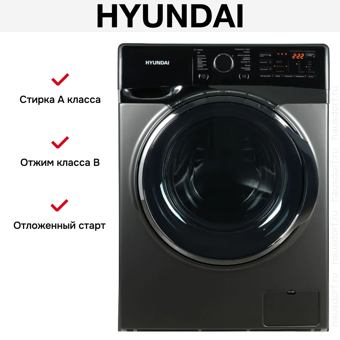 Стиральная машина Хендай WFE8408 выпущена в стандартной конфигурации — устанавливается отдельно, поэтому рекомендуем заранее выделить для нее место в квартире. Благодаря классической фронтальной загрузке она привычна и удобна даже для тех, кто не очень разбирается в технике. Вместительность барабана средняя, поэтому ее хватит и для одиночек, и для семей с детьми. Максимальная загрузка: 8 кг.
