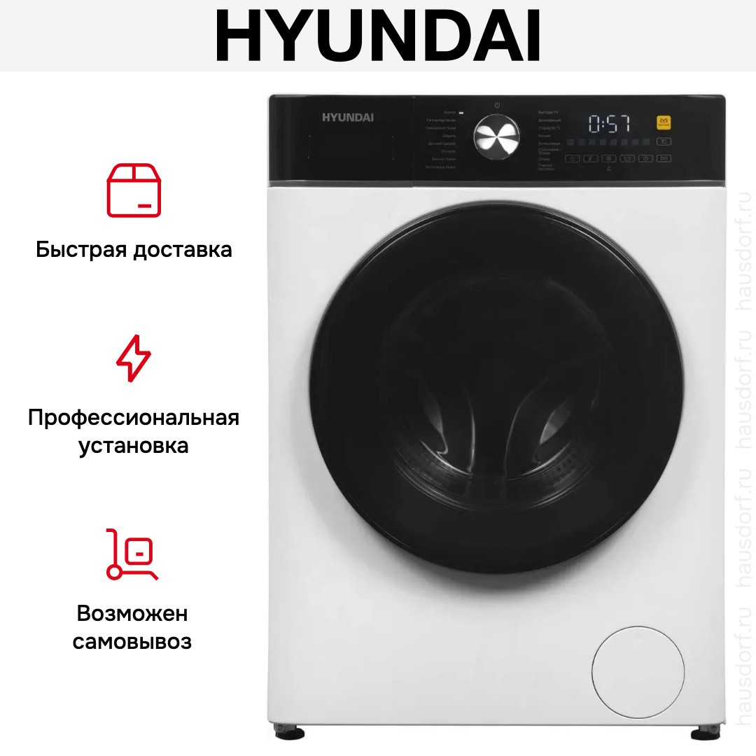 Стиральная машина Hyundai WME7216 — фронтальная отдельно стоящая модель для дома с аккуратными очертаниями белого корпуса и контрастным чёрным люком. Диаметр дверцы 48 см и проём 33 см, створка открывается на 150°, поэтому загружать постельное бельё и объёмные пуховики удобно. Прямая панель управления с цифровым дисплеем, сенсорными клавишами и поворотным селектором делает выбор настроек быстрым, а подсветка из нержавеющего барабана помогает ничего не забыть. При скромной глубине 46,5 см техника органично встанет в узком пространстве, сохраняя привычную ширину 60 см и высоту 84,7 см.