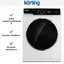 Korting KWD 58L1496 — отдельно стоящая стиральная машина с сушкой в корпусе белого цвета. Черный люк большого диаметра позволяет загрузить объемные вещи. Дверца может открываться на угол до 135 градусов. Вес загруженного белья составляет 9 кг белья при стирке и 6 кг при сушке.