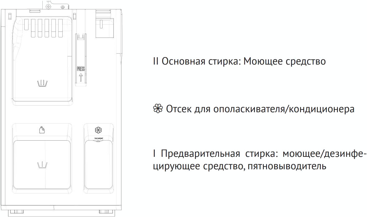 Диспенсер для моющих средств стиральной машины предназначен для правильного и своевременного дозирования жидкого средства для стирки и кондиционера, которые используются при ополаскивании.