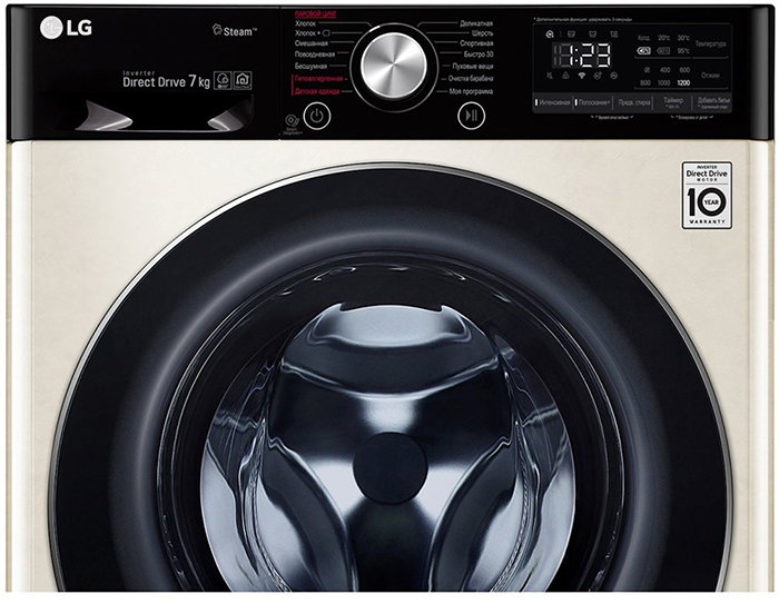 Цвет этой стиральной машинки — бежевый. Мотор: Инверторный. Благодаря ему машина работает тише, потребляет меньше электроэнергии, сохраняя при этом необходимую мощность.