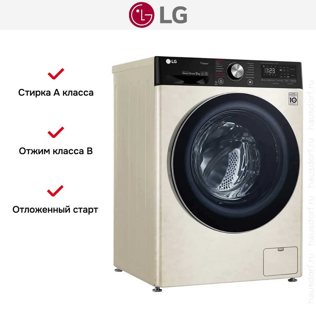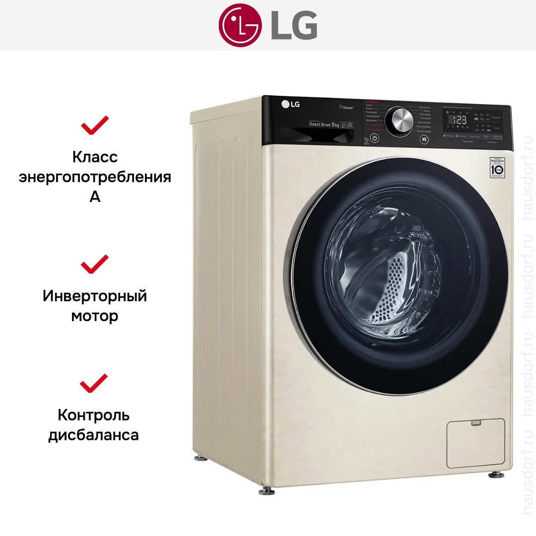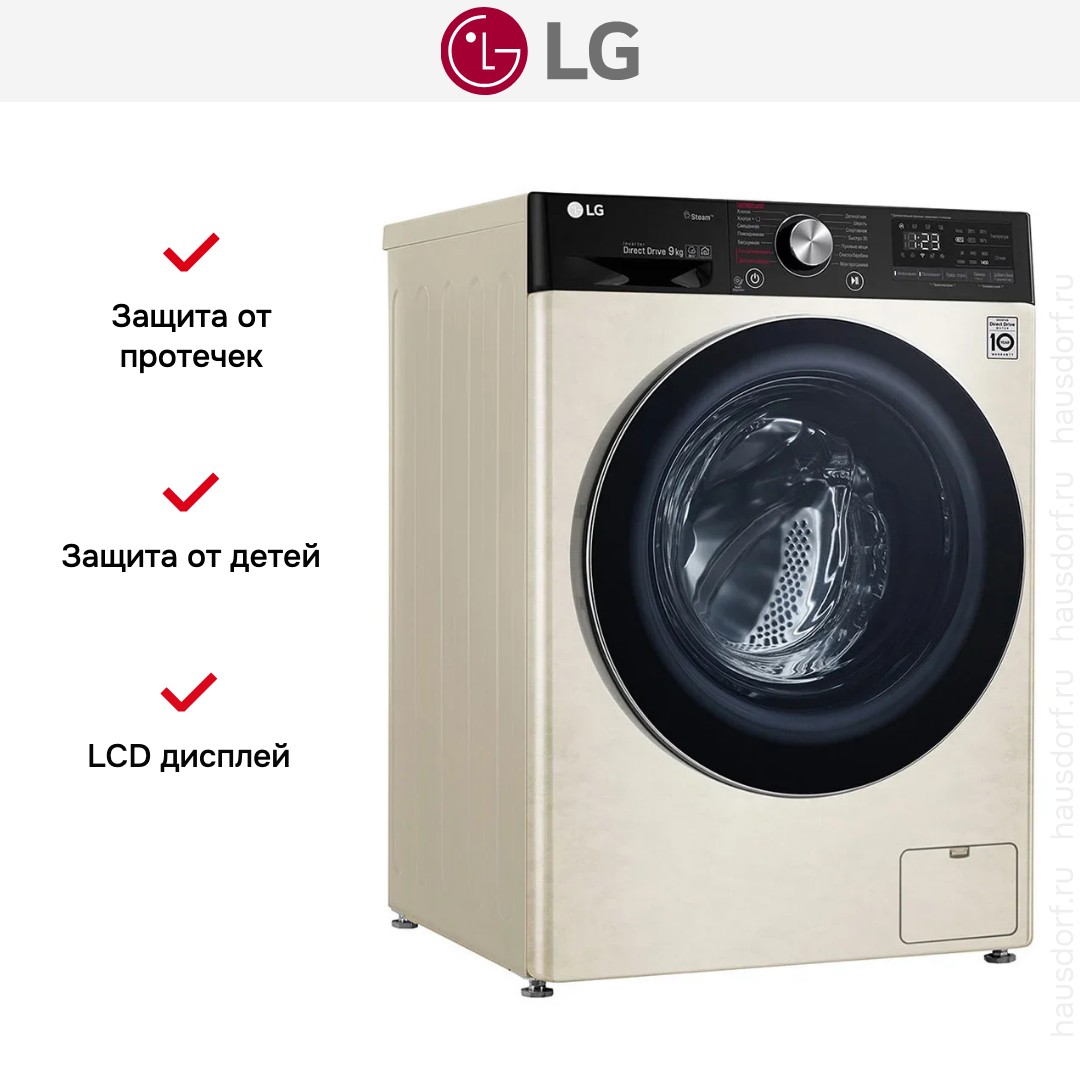 Стиральная машина LG AI DD F4V5VS9B сочетает в себе продуманный дизайн и современные технологии, созданные для ежедневного ухода за бельём в доме. Внешне прибор аккуратен и нейтрален: корпус бежевого цвета с контрастным чёрным люком выглядит одновременно стильно и сдержанно. Компактные габариты 85×60×56 см позволяют установить аппарат в нише стандартной кухни или ванной комнаты, а угол открытия двери в 150° делает загрузку и выгрузку удобной даже при плотной расстановке мебели. Диаметр люка 35 см и система электромагнитной разблокировки дают возможность дозагрузки белья на ранних этапах программы без лишних манипуляций.