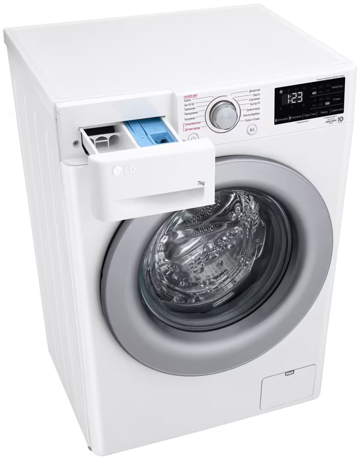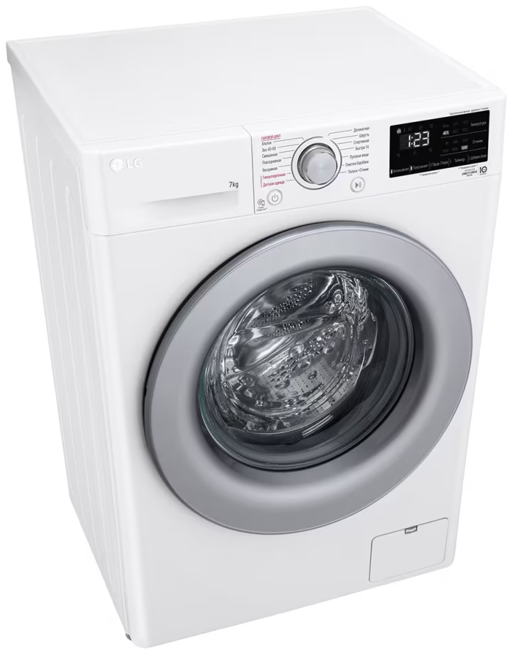 Стиральная машина Лджи F2V3HS4W выпущена в стандартной конфигурации — устанавливается отдельно, поэтому рекомендуем заранее выделить для нее место в квартире. Благодаря классической фронтальной загрузке она привычна и удобна даже для тех, кто не очень разбирается в технике. За счет небольшой глубины данную модель предпочитают владельцы небольших квартир, студий. Вместительность барабана средняя, поэтому ее хватит и для одиночек, и для семей с детьми. Максимальная загрузка: 7 кг.