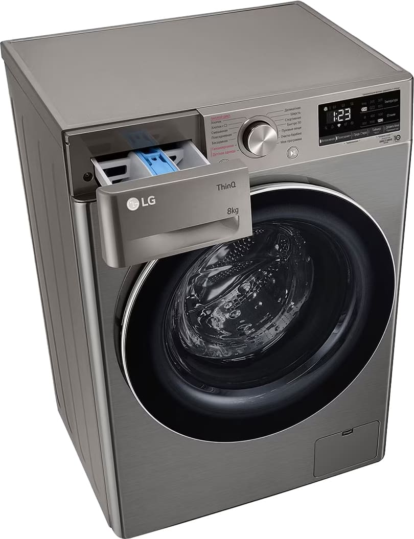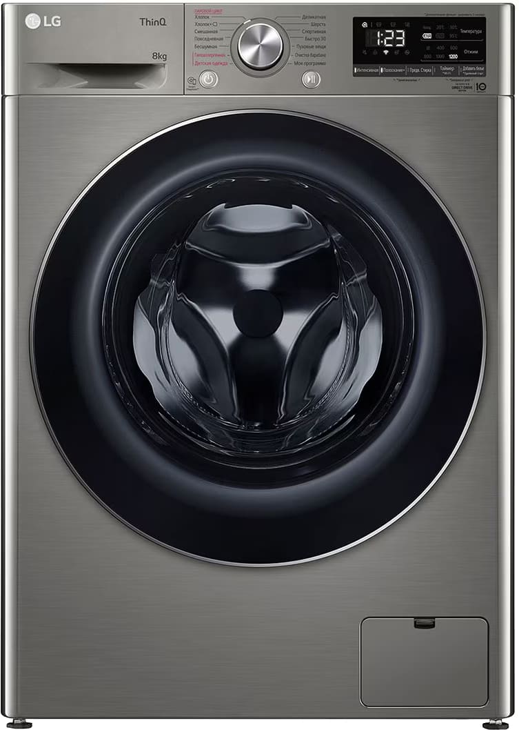 Цвет этой стиральной машинки — серебристый. Мотор: Инверторный. Благодаря ему машина работает тише, потребляет меньше электроэнергии, сохраняя при этом необходимую мощность.
