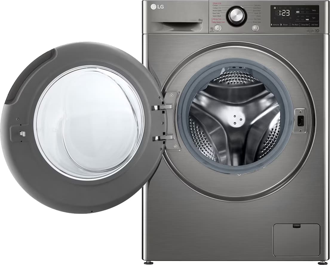 Цвет этой стиральной машинки — серебристый. Мотор: Инверторный. Благодаря ему машина работает тише, потребляет меньше электроэнергии, сохраняя при этом необходимую мощность.