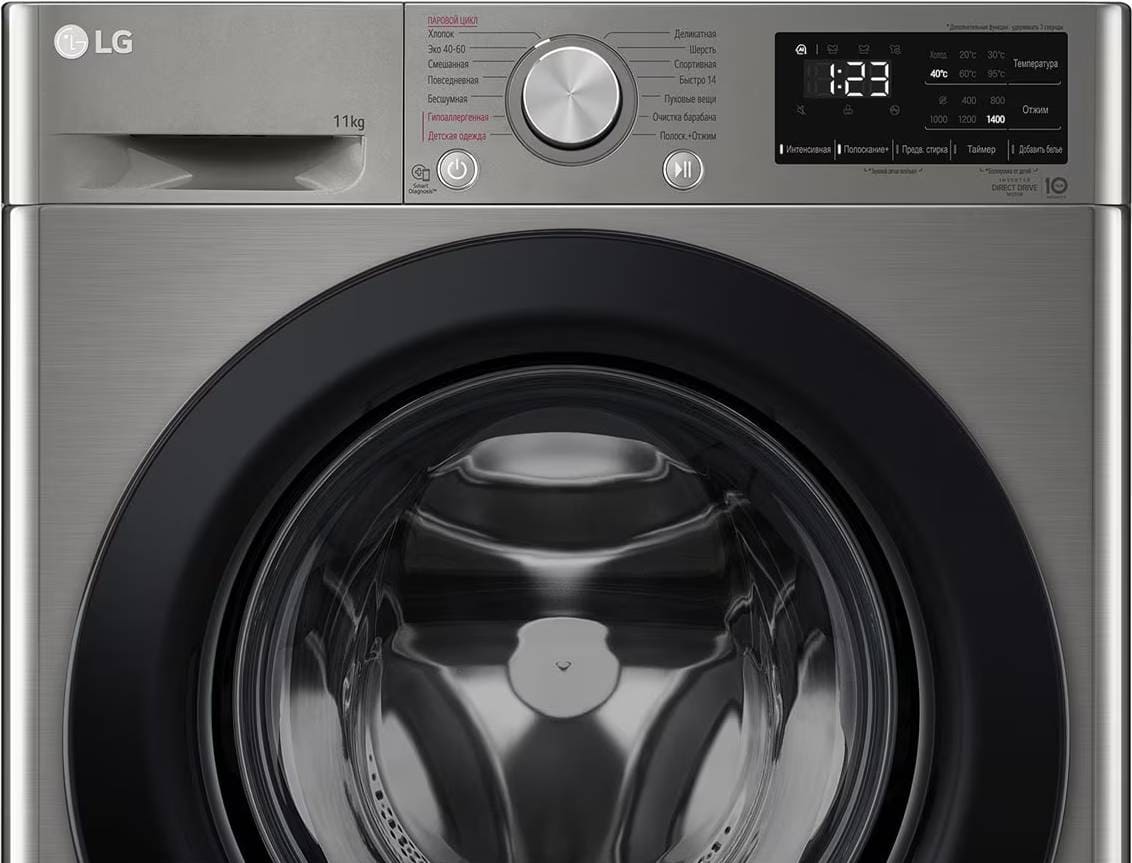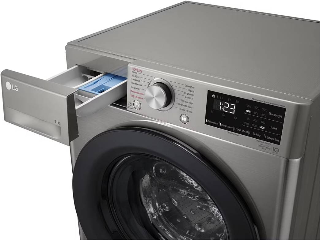 Стиральная машина Лджи F4V3ES6S выпущена в стандартной конфигурации — устанавливается отдельно, поэтому рекомендуем заранее выделить для нее место в квартире. Благодаря классической фронтальной загрузке она привычна и удобна даже для тех, кто не очень разбирается в технике. В барабан помещается большое количество белья, что подойдет большим семьям или тем, кто часто стирает объемные вещи — постельное белье, верхнюю одежду. Максимальная загрузка: 11 кг.