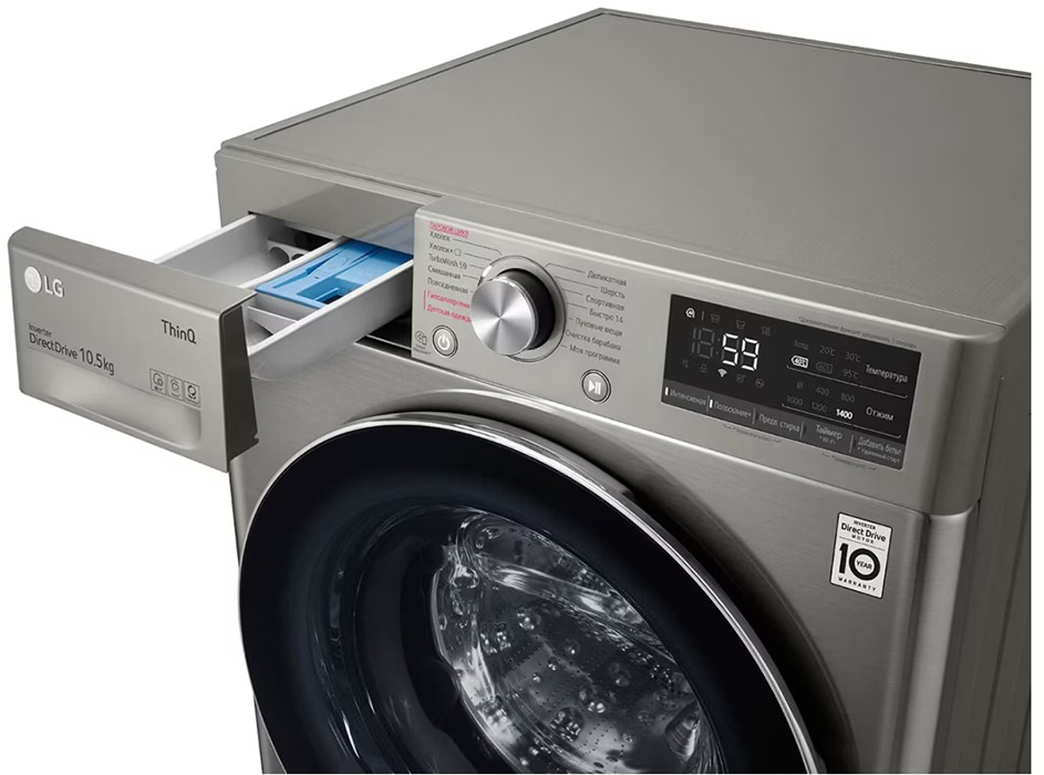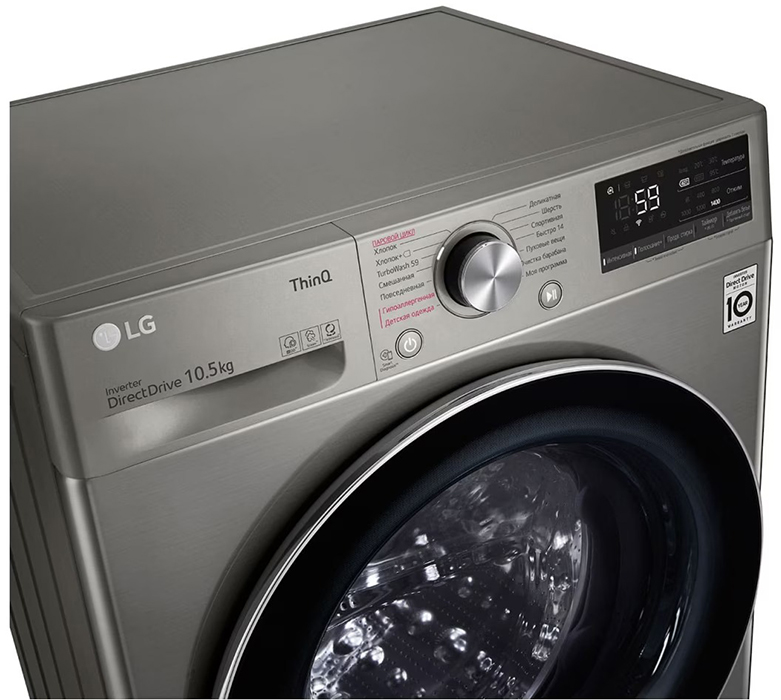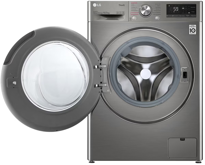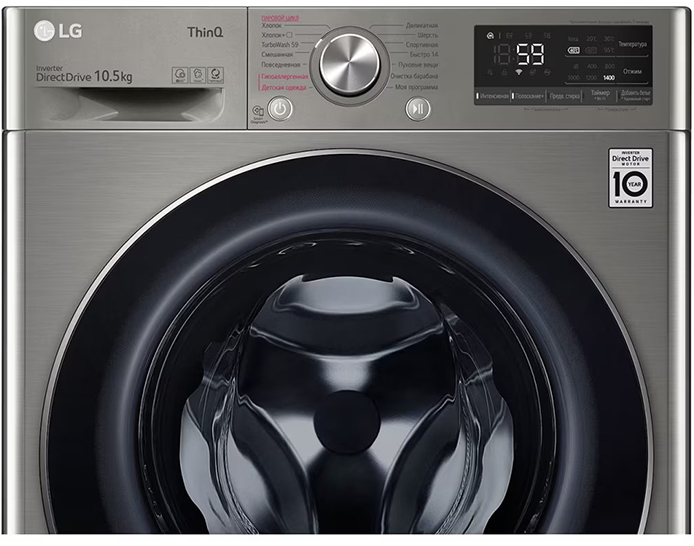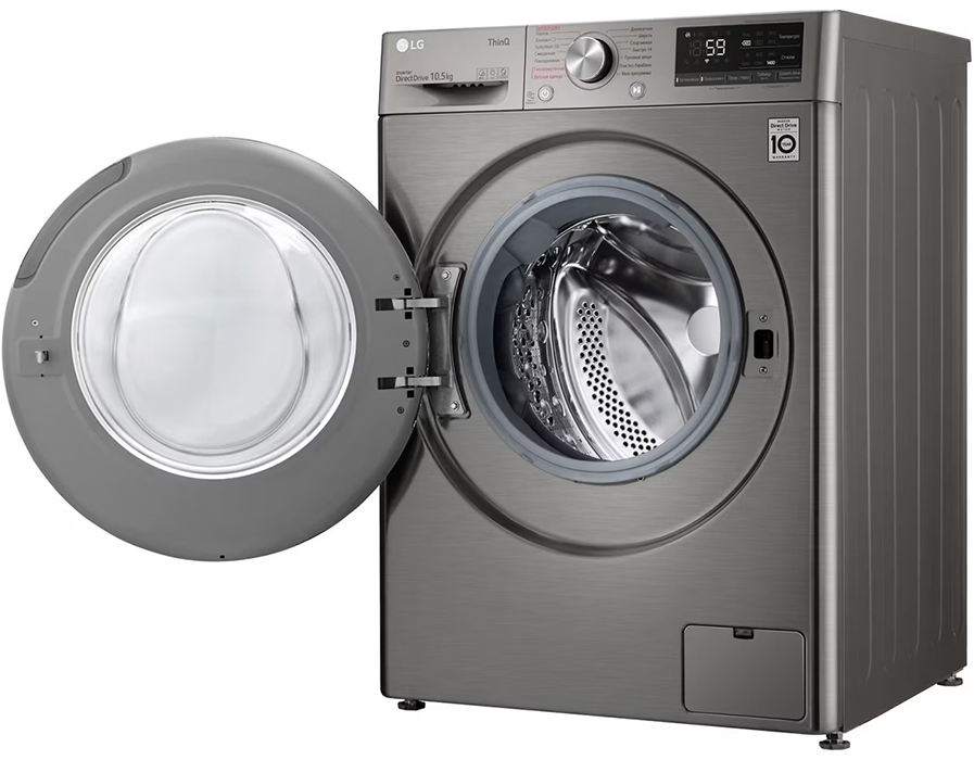Стиральная машина Лджи TW4V5RS2S выпущена в стандартной конфигурации — устанавливается отдельно, поэтому рекомендуем заранее выделить для нее место в квартире. Благодаря классической фронтальной загрузке она привычна и удобна даже для тех, кто не очень разбирается в технике. В барабан помещается большое количество белья, что подойдет большим семьям или тем, кто часто стирает объемные вещи — постельное белье, верхнюю одежду. Максимальная загрузка: 10.5 кг.