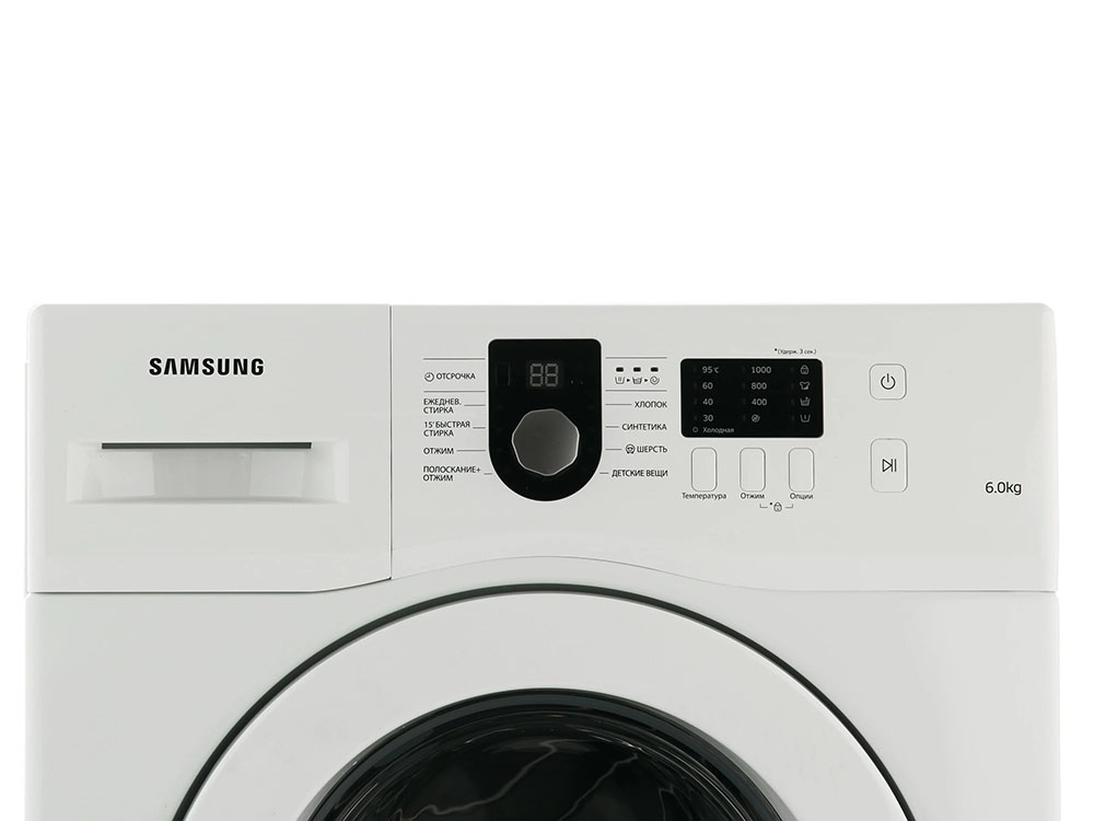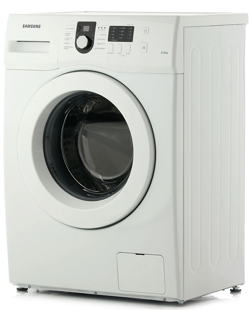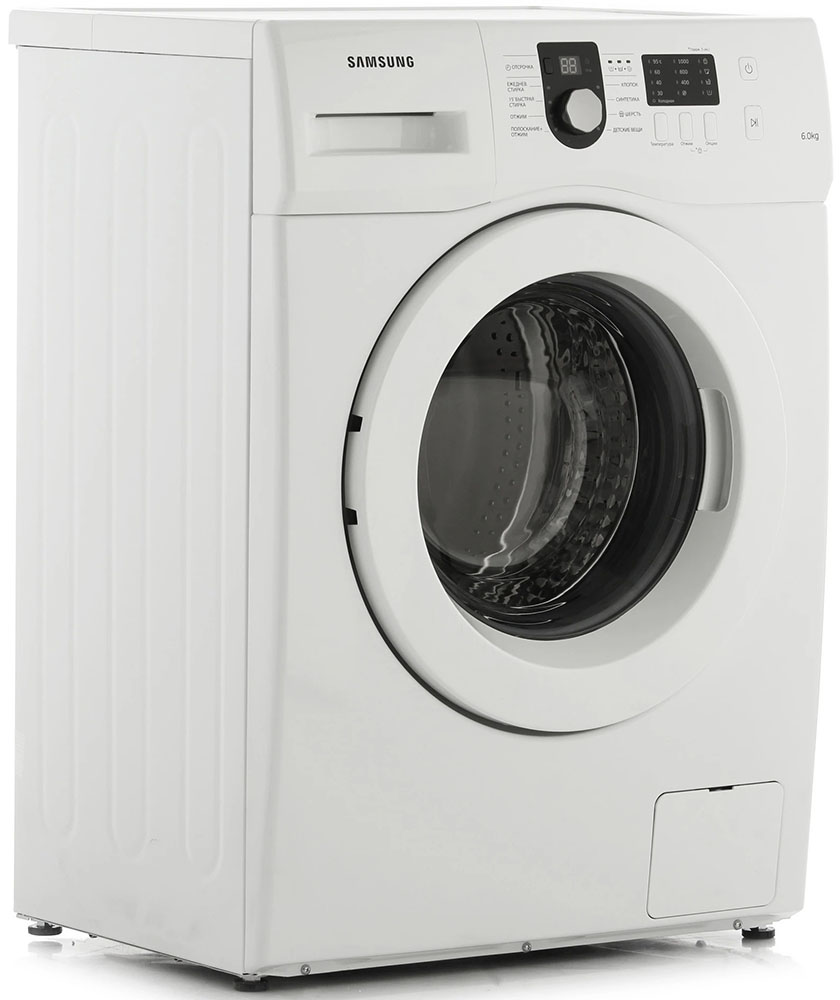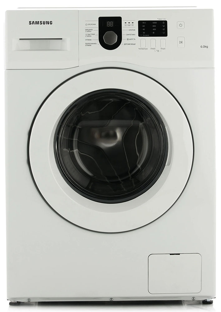 Стиральная машина Самсунг WF 60 F1R0H0W/DLP выпущена в стандартной конфигурации — устанавливается отдельно, поэтому рекомендуем заранее выделить для нее место в квартире. Благодаря классической фронтальной загрузке она привычна и удобна даже для тех, кто не очень разбирается в технике. За счет небольшой глубины данную модель предпочитают владельцы небольших квартир, студий. В барабан помещается не так много вещей за один раз, но тем, кто не любит копить вещи или просто мало стирает, будет достаточно. Максимальная загрузка: 6 кг.