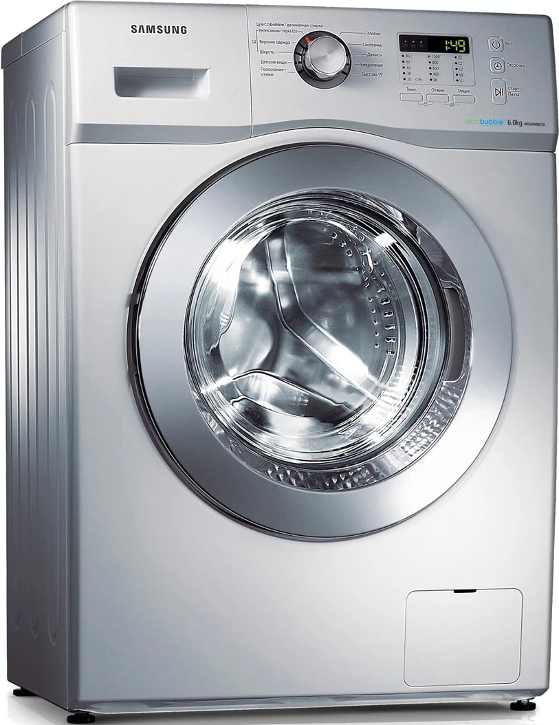 Цвет этой стиральной машинки — серебристый.