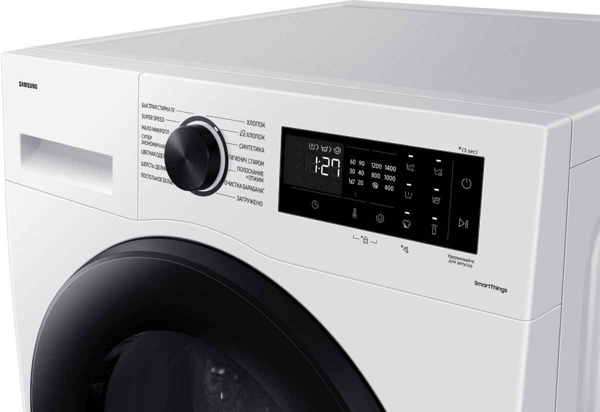 Стиральная машина Самсунг WW11CGC04CAELP выпущена в стандартной конфигурации — устанавливается отдельно, поэтому рекомендуем заранее выделить для нее место в квартире. Благодаря классической фронтальной загрузке она привычна и удобна даже для тех, кто не очень разбирается в технике. В барабан помещается большое количество белья, что подойдет большим семьям или тем, кто часто стирает объемные вещи — постельное белье, верхнюю одежду. Максимальная загрузка: 11 кг.