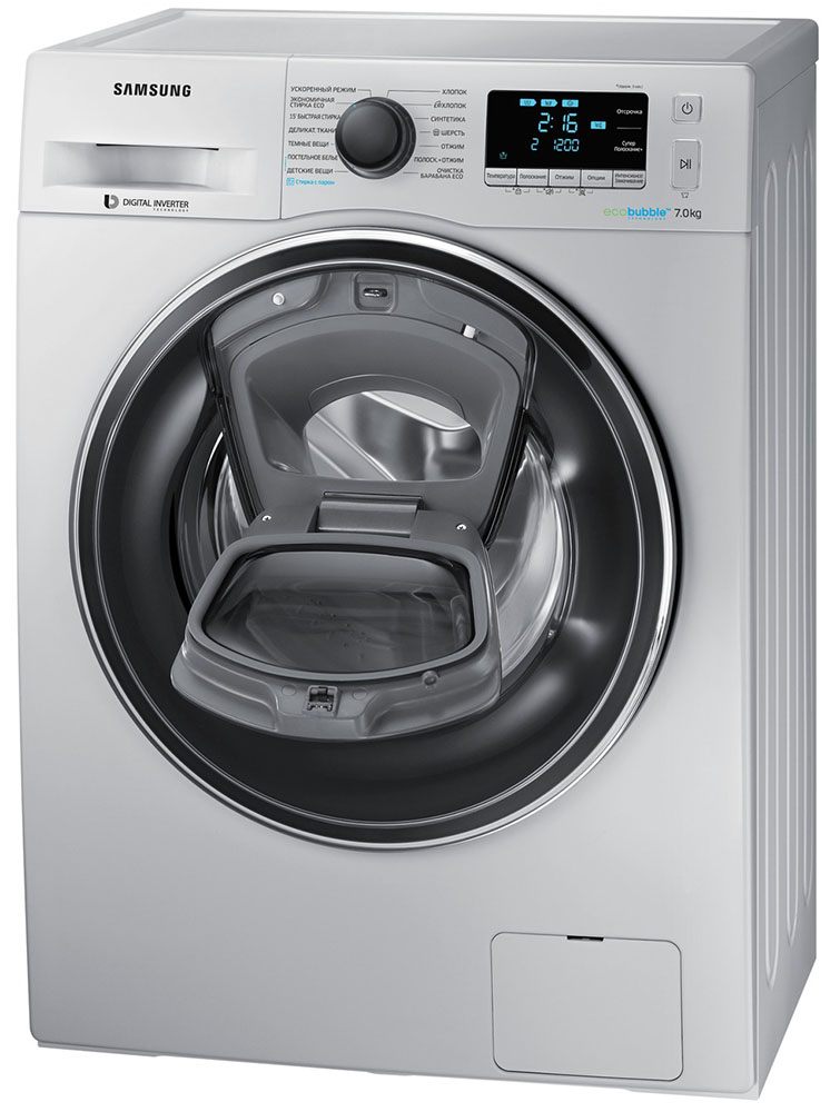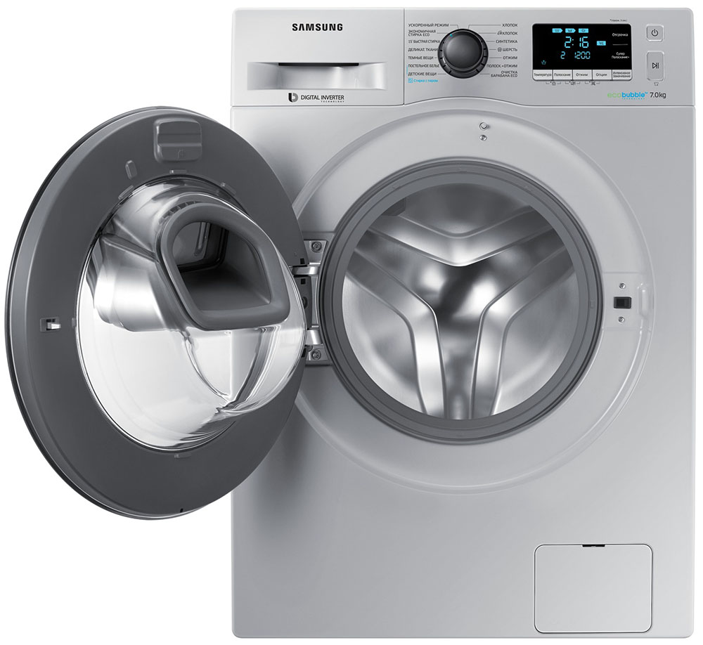 Стиральная машина Самсунг WW70K62E00S AddWash выпущена в стандартной конфигурации — устанавливается отдельно, поэтому рекомендуем заранее выделить для нее место в квартире. Благодаря классической фронтальной загрузке она привычна и удобна даже для тех, кто не очень разбирается в технике. За счет небольшой глубины данную модель предпочитают владельцы небольших квартир, студий. Вместительность барабана средняя, поэтому ее хватит и для одиночек, и для семей с детьми. Максимальная загрузка: 7 кг.