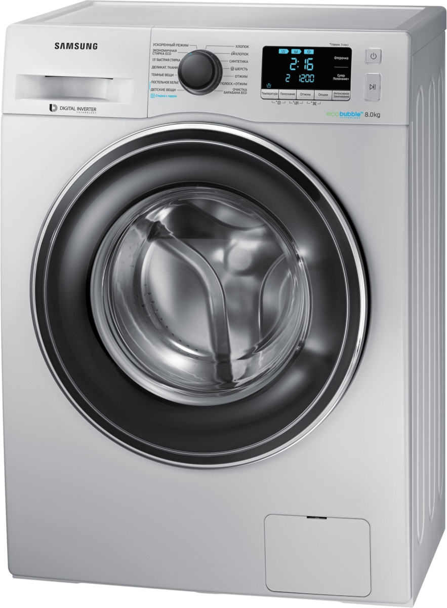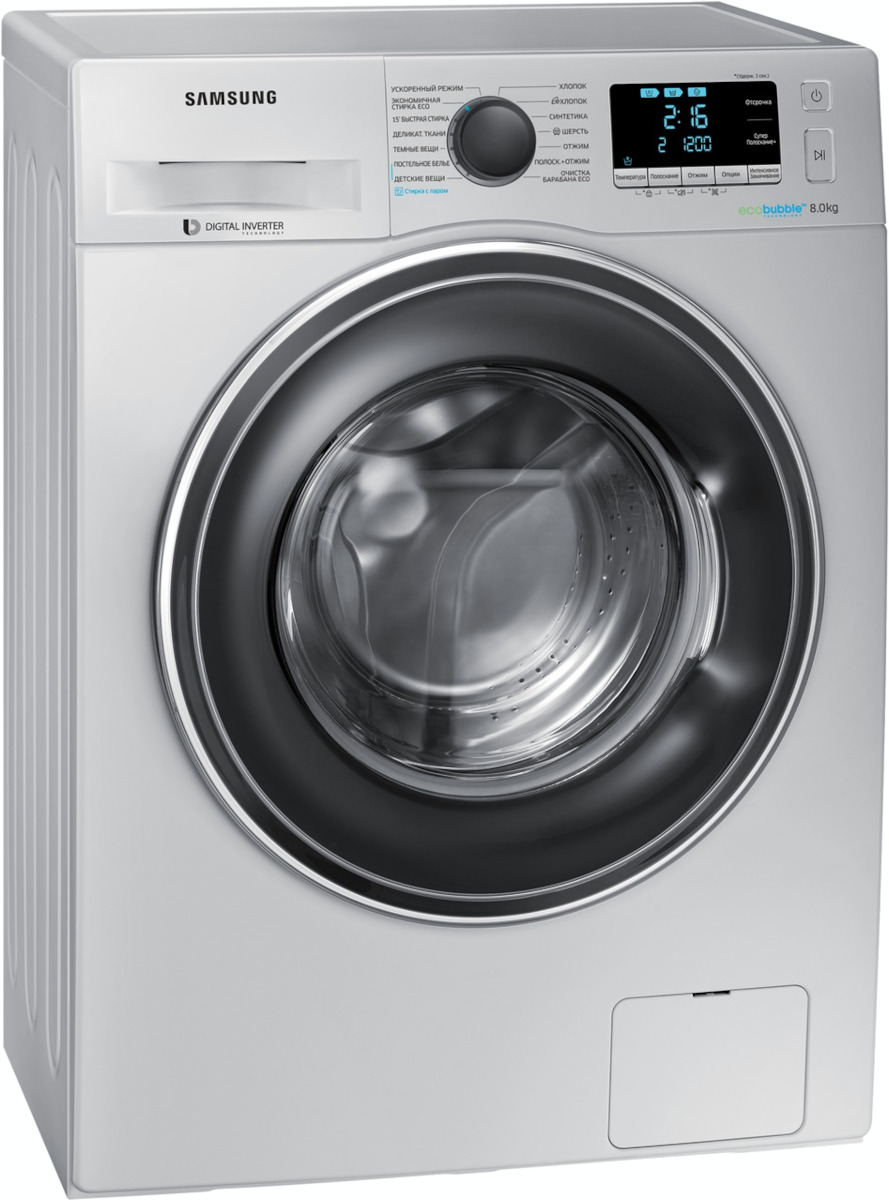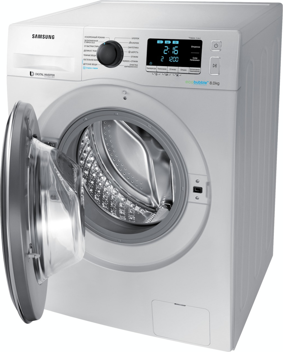 Стиральная машина Самсунг WW80K62E07S выпущена в стандартной конфигурации — устанавливается отдельно, поэтому рекомендуем заранее выделить для нее место в квартире. Благодаря классической фронтальной загрузке она привычна и удобна даже для тех, кто не очень разбирается в технике. За счет небольшой глубины данную модель предпочитают владельцы небольших квартир, студий. Вместительность барабана средняя, поэтому ее хватит и для одиночек, и для семей с детьми. Максимальная загрузка: 8 кг.