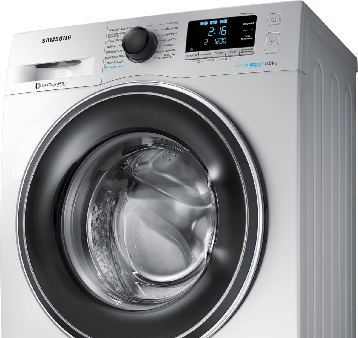 Eco Silence Drive – уменьшает вибрацию и шум, поэтому можно стирать по ночам.