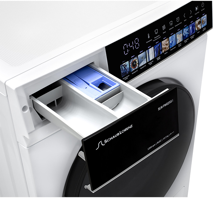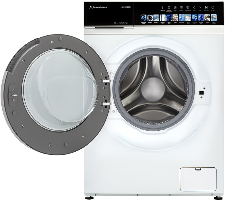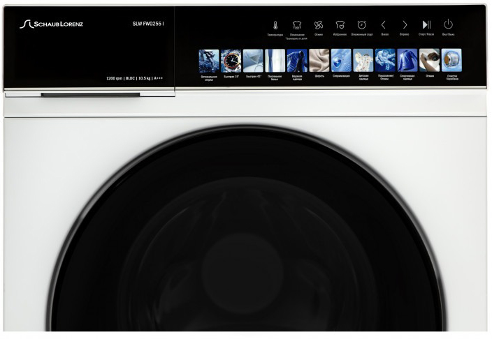 Стиральная машина Шауб Лоренц SLW FW0255 I выпущена в стандартной конфигурации — устанавливается отдельно, поэтому рекомендуем заранее выделить для нее место в квартире. Благодаря классической фронтальной загрузке она привычна и удобна даже для тех, кто не очень разбирается в технике. В барабан помещается большое количество белья, что подойдет большим семьям или тем, кто часто стирает объемные вещи — постельное белье, верхнюю одежду. Максимальная загрузка: 10.5 кг.