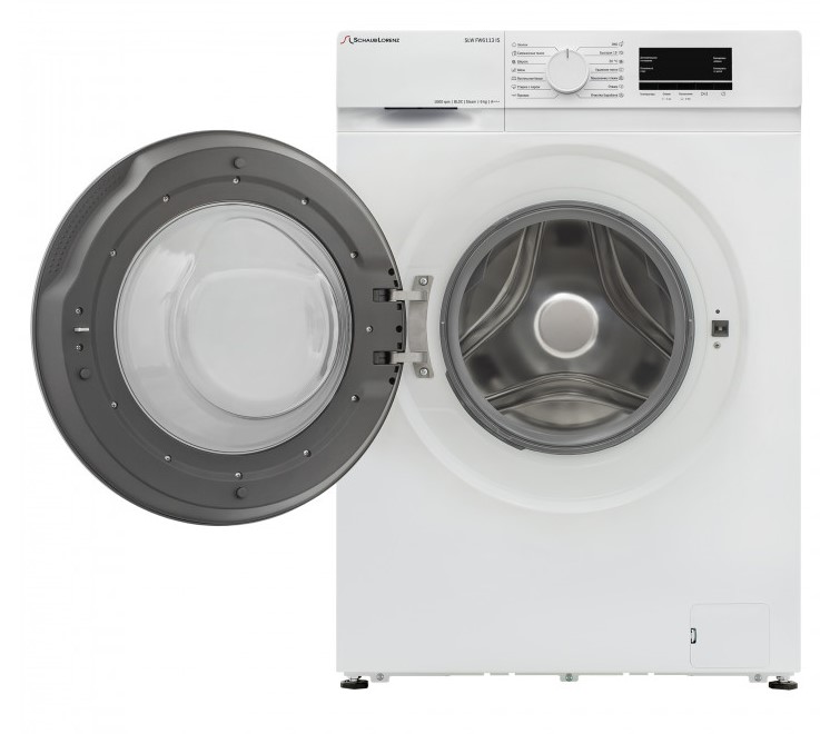 Стиральная машина Шауб Лоренц SLW FW6113 IS выпущена в стандартной конфигурации — устанавливается отдельно, поэтому рекомендуем заранее выделить для нее место в квартире. Благодаря классической фронтальной загрузке она привычна и удобна даже для тех, кто не очень разбирается в технике. За счет небольшой глубины данную модель предпочитают владельцы небольших квартир, студий. В барабан помещается не так много вещей за один раз, но тем, кто не любит копить вещи или просто мало стирает, будет достаточно. Максимальная загрузка: 6 кг.